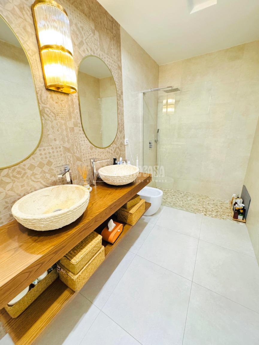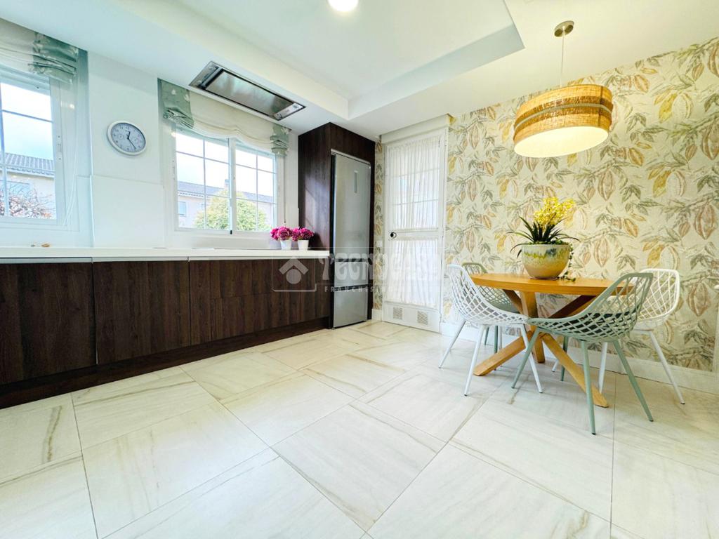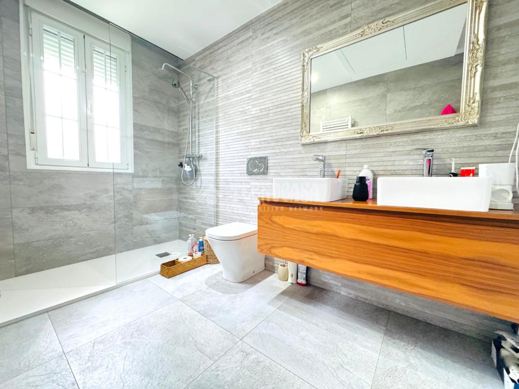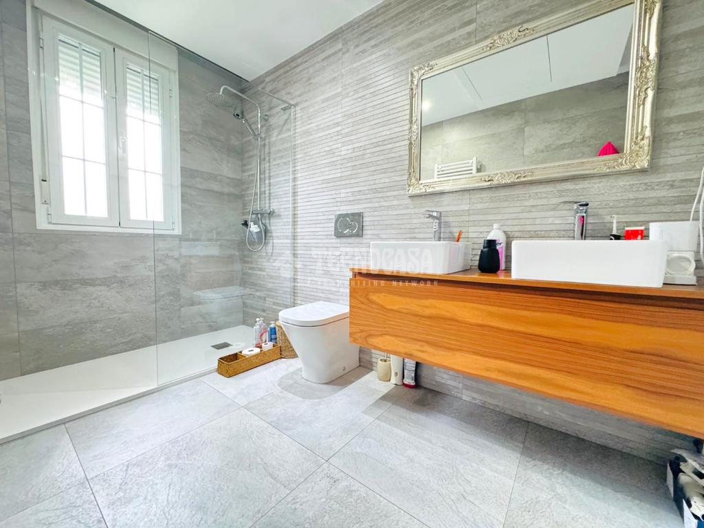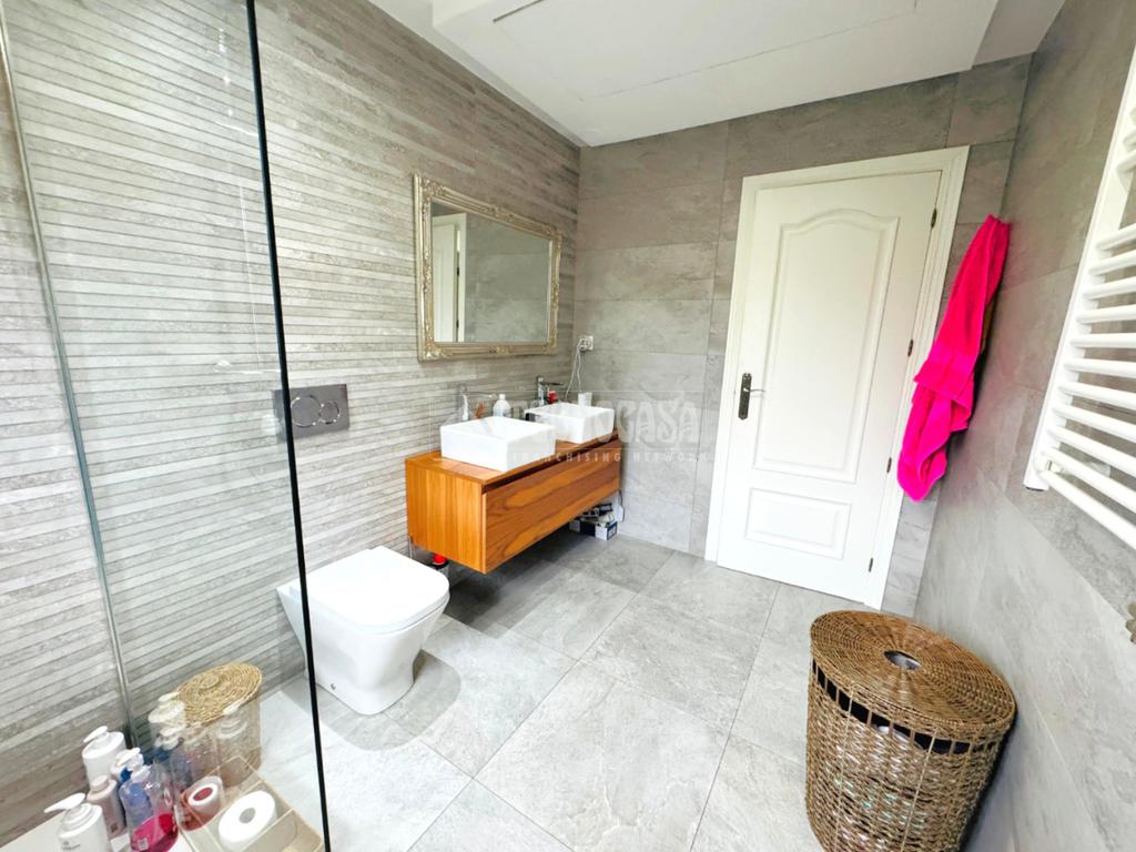 La vivienda cuenta con las MEJORES CALIDADES, TOTALMENTE REFORMADA, ventanas CLIMALIT con puente de rotura térmico, suelos porcelánicos y de tarima, calefacción de Gasoil, BOMBA DE FRIO/CALOR POR VENTILACIÓN POR CONDUCTO y puerta de entrada acorazada.